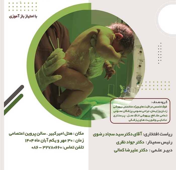 دانشگاه علوم پزشکی اراک سمینار کشوری چالش های زایمان بی درد و بیهوشی در ماردران پرخطر را برگزار می نماید.