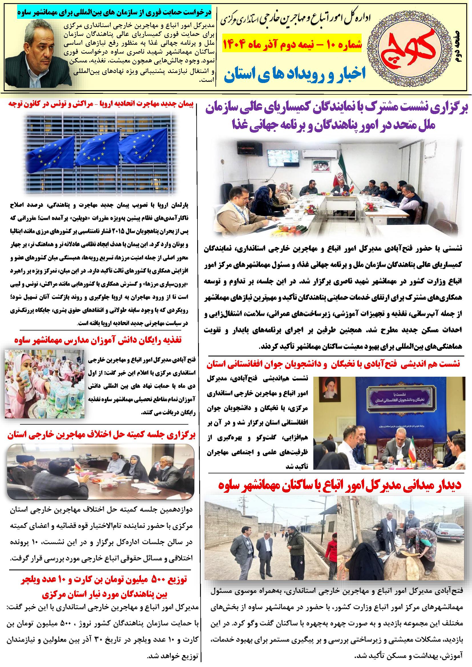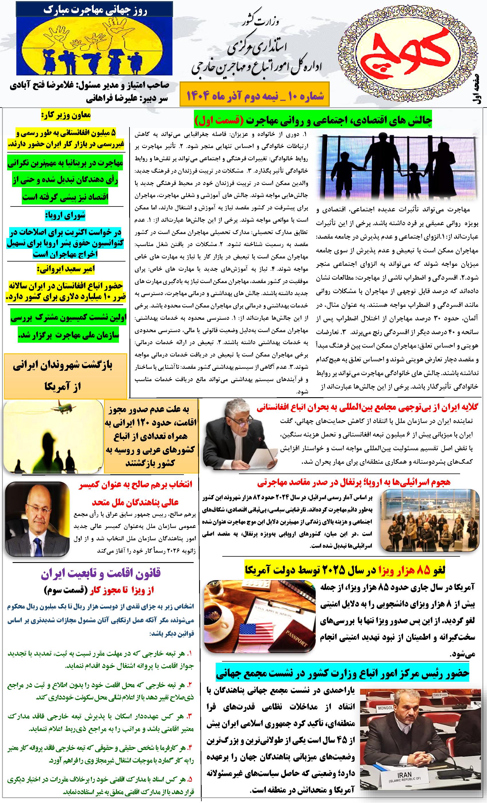 دهمین شماره نشریه کوچ ۰۳ دی ۱۴۰۴ | ۰۹:۲۱ کد : ۵۷۵۲۰ اطلاعیه ارسال به دیگران نام شما ایمیل شما ایمیل دریافتکننده ارسال انصراف تعداد بازدید:۲۳ دهممین شماره نشریه کوچ، توسط دفتر امور اتباع و مهاجرین خارجی استان مرکزی منتشر گردید.